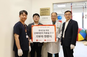 롯데의료재단과 롯데건설이 함께한 ‘롯데건설 후원 치료실’ 기부자 현판식이 지난 3월 13일 하남 보바스병원에서 개최됐다고 밝혔다.이번 행사는 장애아동들의 안정적인 재활치료 환경 조성을 위해 롯데건설이 1억 원을 기부한 것을 기념하는 자리로, 기부자의 공로를 기리고 기부 문화를 확산하기 위해 마련됐다.이날 행사에는 롯데건설 한정호 전략기획부문장, 롯데의료재단 윤연중 보바스병원장을 비롯한 롯데의료재단 및 하남 보바스병원 관계자, 롯데건설 관계자 등이 참석했다. 참석자들은 국내 장애아동 재활치료의 현실을 공유하며, 기업과 사회가 함께할
