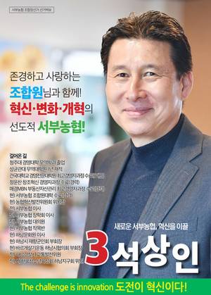 경기도 하남 서부농업협동조합장 선거에 석상인 농협혁신발전위원회 위원장이 23일 출마를 선언했다.석상인 후보는 "변화와 혁신으로 새롭게 도약하는 서부농협! 미래농업을 선도하는 서부농협을 만들겠다"고 포부를 밝혔다.이어 "조합원, 대의원, 이사 역임 및 경영학부 전공과 지역사회 봉사 경영자로서 앞을 내다보는 혜안을 갖고 조직관리 리더십을 발휘하여 조합을 위해 열심히 일할 준비를 해왔다"며, "조합원을 섬김으로 받들고, 조합원만 바라보고 뛰겠다"고 역설했다.석 후보의 13대 주요 공약으로는 ▲주부대학,실버대학,조합원대학(자율성 보장 지원