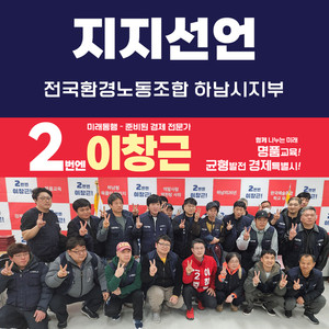 제22대 국회의원선거 하남시을 이창근후보(국민의힘)에 대해 하남시 주요단체들의 지지선언이 잇따르고 있다.지난 21일 전국환경노동조합 하남시지부 조합원 약 25여명은 미사역 5번출구 앞에 위치한 이창근 후보 선거사무실에 찾아 이창근 후보를 지지선언 했다.이어 근무지 유해환경에 따른 건강영향조사 실시, 근로자의 처우개선 및 복지증진, 민간위탁 노동자 근로조건 보호에 대한 안전협의체 구성 등과 열악한 노동환경인 지하시설에서 근무 중 다이옥신, 미세먼지, 총 부유세균, 일산화탄소 등 유해환경에 노출돼 있어 근로자의 건강영향조사를 실시해 줄