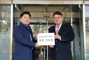 김기윤 하남교육지원청설립추진위원장(이하 ‘추진위원장’)은 지난 8일 하남교육지원청 설립을 위한 건의문을 대통령실 시민사회수석실 관계자에게 전달했다고 밝혔다.이 건의문에는 하남시 학생수가 광주시보다 더 많은 점, 가평·여주·양평·포천·안성 등 경기도 내 하남시보다 인구가 적은 도시들이 별도 교육지원청이 있는 점, ‘하남교육지원센터’의 17명 직원만으로 하남시 교육행정을 처리하기가 상당히 어려운 점, 향후 10년 내 하남시 인구가 50만명에 육박하는 점, 지난 4월 임태희 경기도교육감과 유기홍 국회 교육위원장 및 조경태 교육위원과 면담