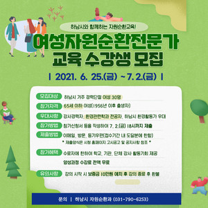하남시(시장 김상호)는 지역 내 경력단절 여성을 대상으로 하는 ‘자원순환전문가 양성교육’ 수강생을 모집한다고 28일 밝혔다.시는 자원순환 전문인력 양성을 통해 경력단절 여성의 사회활동 참여 기회를 확대하고, 지속 가능한 자원순환 문화를 조성하고자 이번 교육과정을 마련했다.모집 기간은 오는 7월 2일까지며, 대상은 하남시에 주소를 둔 65세 이하 여성 30명이다. 수강료는 전액 시에서 지원한다.희망자는 2일 오후 6시까지 등기우편 또는 팩스, 이메일(lee83@korea.kr)로 신청서를 제출하거나 하남시청 자원순환과에 방문해 접수하