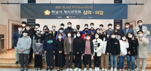 하남시는 지난 23일 하남시청소년수련관 주관으로 청소년의회 임시회를 열고 2022년 청소년 주민참여예산을 심의·의결했다고 밝혔다.지난해에 이어 올해 두 번째로 진행된 청소년 주민참여예산제 심의에는 21명의 청소년 의원들과 청년보좌관 6명을 비롯해 김상호 하남시장, 방미숙 하남시의회 의장과 김낙주 시의원 등이 함께했다.청소년 주민참여예산제는 △제4회 하남시 청소년정책제안대회 ‘청·포·도’ 제안에 대한 부서별 검토의견 발표 △2021년도 청소년 주민참여예산제 운영결과 공유 △2022년도 운영사업 지속여부 심의·의결 등의 순으로 진행됐다