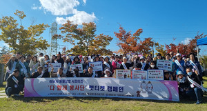 하남시(시장 이현재)는 지난21일 미사한강2호공원에서 동물보호 서포터즈 ‘다 함개 봉사단’ 100여 명이 참석한 가운데 펫티켓 홍보 캠페인을 진행했다고 밝혔다.‘다 함개 봉사단’은 동물보호에 관심 있는 시민과 반려인 등으로 구성된 동물보호 서포터즈로, 하남시 홈페이지와 하남시 자원봉사센터를 통해 직접 신청하거나 동 행정복지센터의 추천을 받은 동물애호가 등의 자원봉사자들이 참여했다.시는 ‘다 함개 봉사단’ 자원봉사자들과 함께 북측공원 일대(미사한강공원 2호~5호)를 다니며 일반 시민과 애견인 들을 대상으로 동물보호와 펫티켓을 홍보활동