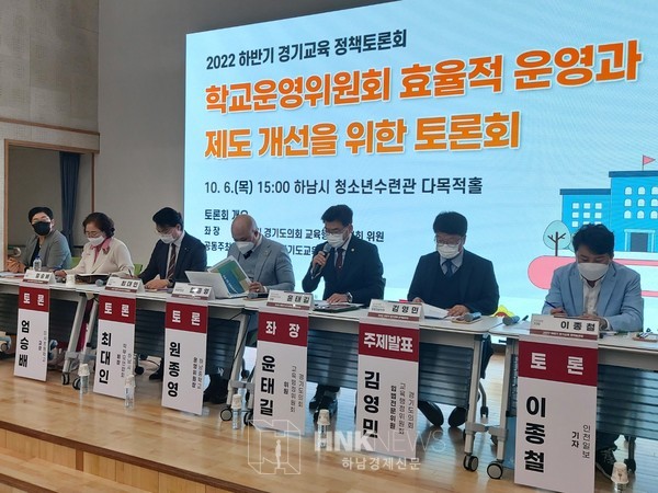 경기도의회 교육행정위원회 윤태길 의원(국민의힘, 하남1)이 좌장을 맡은 「학교운영위원회의 효율적 운영과 제도개선을 위한 토론회」가 6일(목) 3시 하남시청소년수련관 다목적홀에서 개최됐다.