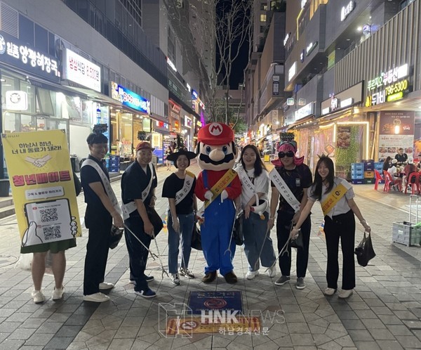 특히 이날 조창민 청년명예시장과 청년정책특보단은 슈퍼마리오 등 캐릭터 코스튬과 ‘깨끗한 거리를 만들자’는 문구가 적힌 어깨띠와 워킹배너 등을 활용한 쓰줍킹 퍼포먼스로 청년들의 눈길을 사로잡았다.