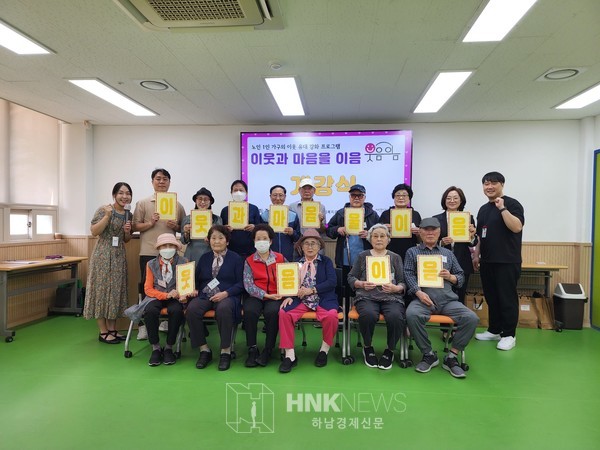 ‘웃음이음’은 지난해 시범 운영한 고독사 예방사업의 2차년도 확대 프로그램으로, 지역 내 정서적 고립과 관계 단절 문제를 겪고 있는 노인 1인가구를 대상으로 사회적 유대 강화와 돌봄 체계 회복을 목표로 하고 있다. 이번 프로그램은 5월 29일 개강식을 시작으로 운영되며, 생활기반 붕괴 위험이 높은 고령 참여자 12명이 구성돼 활동에 참여하게 된다.