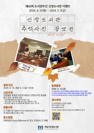 “신장도서관의 옛 모습을 추억할 수 있는 소중한 기억들을 공유해주세요”하남시(시장 이현재)가 ‘제60회 도서관 주간’(4월 12~18일)을 맞아 하남시 최초의 공공도서관인 신장도서관의 역사와 추억을 시민들과 공유하기 위해 ‘추억을 담은 신장도서관’을 주제로 한 사진 공모전을 개최한다.17일 하남시에 따르면 시는 신장도서관이 개관한 해인 1996년부터 리모델링으로 재개관한 2020년까지 신장도서관을 배경으로 찍은 사진 또는 도서관 이용 모습이 담긴 사진을 오는 5월 3일까지 공모한다.신장도서관의 추억을 가진 전 국민을 대상으로 공모가