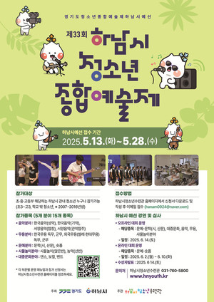 하남시청소년수련관(관장 조재영)이 ‘제33회 하남시청소년종합예술제 하남시대회’ 참가 청소년을 오는 5월 28일까지 모집한다.하남시가 주최하고 수련관이 주관하는 이 대회는 청소년들의 문화 감수성과 예술적 재능을 계발하고, 건전한 청소년 문화를 확산하는 것을 목표로 한다. 또래 간 예술을 통해 교류하고 감성을 공유할 수 있는 축제의 장으로, 하남 지역 청소년들에게 매년 큰 관심을 모으고 있다.경연은 총 5개 분야 15개 종목으로 구성됐다. 음악 분야는 성악·기악·합창·관악합주, 무용 분야는 한국무용과 외국무용의 독무 및 군무, 문예 분