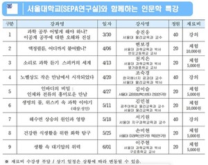 하남시(시장 이현재)가 18일부터 서울대학교 물리교육과(SEPA연구실)와 연계한 ‘2024 하남시민대학 과학특강’을 수강할 신청자를 선착순 모집한다.‘2024년 하남시민대학 과학특강’은 서울대 교수와 박사 등 대한민국 최고의 석학들을 초빙해 진행하는 강연으로, 시민들이 실생활과 접목한 융합적 사고력과 과학기술의 이해를 높이는 기회를 얻도록 지원하기 위해 기획됐다.이번 과정은 이달 30일 개강을 시작으로 매주 토요일 오전 10시 하남시평생학습관에서 ‘강의’(강의별 정원 40명)와 ‘체험형’(강의별 정원 20명) 방식으로 운영된다.먼저