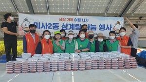 하남시 미사2동 새마을부녀회와 지역사회보장협의체는 21일 관내 저소득층 100가구를 대상으로 정성스레 만든 삼계탕을 전달했다고 밝혔다.미사2동 새마을부녀회(회장 최경옥) 회원 10여명은 이날 어르신들이 무더운 여름을 건강하게 보낼 수 있도록 재료를 준비하고 닭을 삶아 삼계탕 100인분을 직접 준비했다.미사2동 지역사회보장협의체(민간위원장 송왕헌) 위원 등 10여명도 봉사에 참여해 독거노인 등 어려운 이웃 100가구를 직접 방문해 삼계탕을 전달하고 안부도 함께 살폈다.이영수 미사2동장은 “삼계탕 준비와 전달에 참여해 주신 봉사자들께