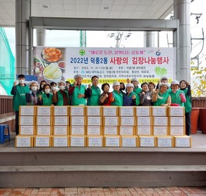 하남시 덕풍2동 새마을협의회(회장 송광흡)·부녀회(회장 이순희)는 21일부터 22일까지 이틀에 걸쳐 『사랑의 김장담그기』 행사를 진행했다고 밝혔다.본 행사는 어려운 이웃을 돕기 위해 새마을협의회·부녀회가 중심이 돼 덕풍2동 관내 유관단체(통장단, 주민자치회, 사회보장협의체, 체육회, 바르게살기위원회, 방위협의회)가 힘을 모아 매년 겨울 진행하는 행사다.이번 김장담그기 행사는 텃밭에서 직접 재배한 배추를 수확하여 행정복지센터 옥외 주차장에서 배추 속 넣기와 포장까지 덕풍2동 유관단체원 봉사자 80여명이 참여한 가운데 진행됐다.이날 정