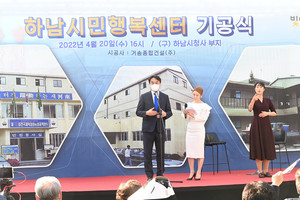 하남 시민들의 행복 충전소 역할을 하게 될 ‘시민행복센터’가 20일 덕풍동 구 시청사 부지에서 기공식을 갖고 본격적인 공사에 들어갔다.김상호 시장은 “시민행복센터는 원도심 균형발전의 첫 보배이자, 민관협치로 만든 첫 보물이라는 점에서 의미가 크다”고 밝혔다.이날 기공식에는 김상호 시장을 비롯해 최종윤 국회의원, 방미숙 하남시의회 의장과 시의원, 기관단체장, 시민 등 100여명이 참석해 축하했다.특별히 이번 기공식은 시민과 함께하는 형태로 계획돼 소복마당 영상의 주인공인 박춘자 할머니의 선포로 시작됐다. 또 행사 말미 현수막 분리를