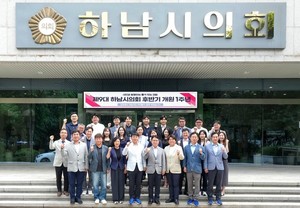 하남시의회(의장 금광연)은 1일 오전 11시 의회 소회의실에서 의원 및 직원들이 참석한 가운데 ‘제9대 하남시의회 후반기 개원 1주년 기념식’을 개최했다.금광연 의장은 기념사를 통해 “지난 1년 동안 시의회는 의정슬로건 ‘시민과 동행하는 품격있는 의회’를 목표로 하남발전과 시민행복을 위한 한결같은 마음으로 달려왔다.”라고 소회를 밝히며 “제9대 의회 개원 때 다짐했던 초심을 잃지 않고 시민과 소통하며 새롭게 변화하는 하남을 위해 함께 뛰는 의회를 만들어가자.”라고 다짐했다.제9대 의회 후반기 개원 1주년 기념식에 참석한 의원들은 지