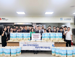 ㈜베이크플러스(대표이사 브리스 브이에)는 지난 13일 추석을 맞이하여 임직원이 한마음으로 모은 후원금 5,189,000원을 통해 희망의 백미 2,250kg를 구입해, 이를 하남시미사강변종합사회복지관(관장 조혜연)에 전달했다고 밝혔다.㈜베이크플러스는 1994년 창립하여 제과 및 제빵 원료를 유통하는 회사로 2010년 하남시로 본사를 신축 이전하면서 베이커리 전문점인 ‘알레스구떼’를 확장 오픈한 이후 2011년부터 어린이날을 기념하며 하남지역의 아이들을 위한 케이크 그리기 행사를 진행해 왔으며, 올해 5월에도 어김없이 지역 내 아동들을