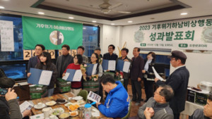 기후위기하남비상행동(상임대표 서정화외 6인)는 지난13일 오후 5시 탄소중립을 위한 평가와 성과를 함께 공유하고 이후 활동을 다짐하는 시간을 가졌다고 밝혔다. 이번 성과발표는 김옥분 준비위원장을 주축으로 위원회를 구성하여 진행하였으며, 90여명의 참석한 가운데 이날 각계에서 탄소중립을 위한 활동에 대한 표창(수상자 천경연, 최은희, 김다정, 이은석, 박지훈)이 이루어졌다.이날 행사는 1부 개회, 고문단 소개, 표창, 인사말, 활동공유를 진행하였으며, 2부 공연에서는 홍경선 팝송 강사의 사회와 노래, 시낭송 ‘겨울의 언어’ 김진영,