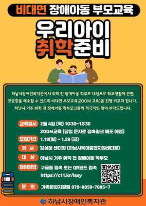하남시장애인복지관(관장 민복기)은 2월 4일(목)에 취학 전 장애아동을 둔 예비 학부모를 대상으로 비대면 부모교육 ‘우리아이 취학준비’ 을 화상회의 프로그램 (ZOOM)을 통해 진행된다고 지난 26일 밝혔다.이번 취학준비 교육은 부모교육 전문가로 활동 중인 하남시육아종합지원센터 강성례 센터장의 전문강의로 진행되며 장애자녀의 초등입학에 대한 준비와 학교생활에 적응 방법등에 대한 정보를 제공한다. 민복기 관장은 “우리아이 취학준비 부모교육이 취학 전 장애아동을 둔 예비 학부모들에게 도움이 되는 유익한 시간이 되길 바라며 앞으로도 취학전