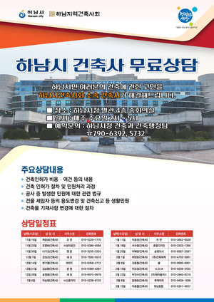 하남시(시장 이현재)가 법적분쟁 등으로 고충을 겪고 있는 취약계층과 시민을 대상으로 법률·노무·세무·건축상담을 무료로 실시해 눈길을 끌고 있다.하남시는 그동안 코로나19로 인해 전화상담으로 대신했던 무료 법률상담을 최근 일상회복에 따라 대면상담으로 전환해 시민들의 호응을 얻고 있다.시는 전문적인 법률·노무·세무상담을 위해 상담관으로 변호사 3명, 법무사 1명, 노무사 2명, 세무사 5명 등 총 11명을 위촉해 운영하고 있다.무료법률상담은 매월 첫째주는 ▲월요일(오전 10시~11시15분) 감일동주민자치센터 ▲수요일(오후 2시~4시)
