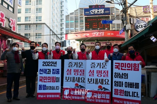 국민의힘 하남당원협의회는 28일 코로나19 확산 여파로 어려움을 겪고 있는 전통시장 상인들을 위해 관내 신장시장을 찾아 '설맞이 전통시장 장보기' 행사를 가졌다고 밝혔다.