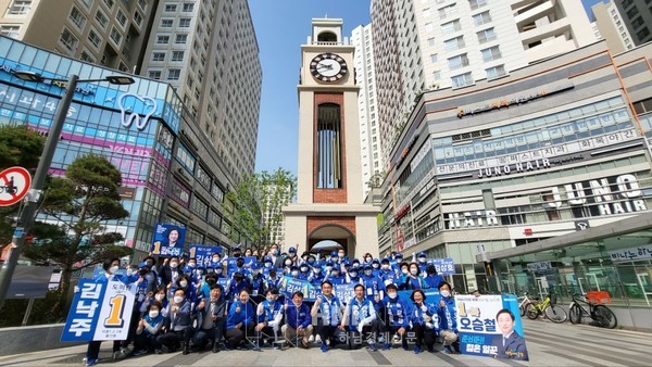 더불어민주당 원팀 하남시 선거대책위원회는 공식 선거운동 첫날인 19일 미사역 시계탑에 집결해 출정식을 열고 “하남 5개 지하철 등 하남시민의 승리를 만들겠다”고 지지를 호소했다.