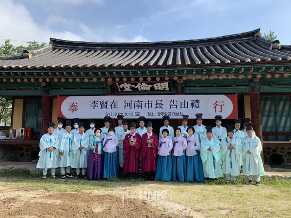 이현재 하남시장이 12일 광주향교(전교 유병권) 대성전에서 광주향교 유생 30여명과 함께‘고유제 봉행’을 가졌다.