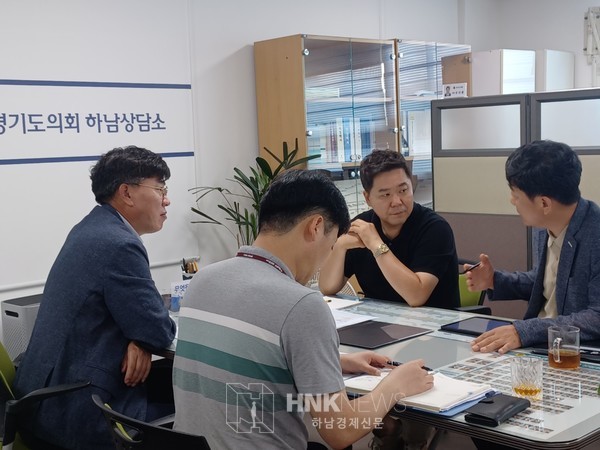 경기도의회 보건복지위원회 김성수(국민의힘·하남2) 의원은 21일 경기도의회 하남상담소에서 경기도교육청 시설과 이헌주 과장과 학교 전기차 충전시설 설치 업무와 관련하여 정담회 자리를 마련했다.