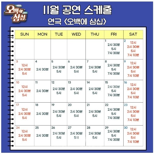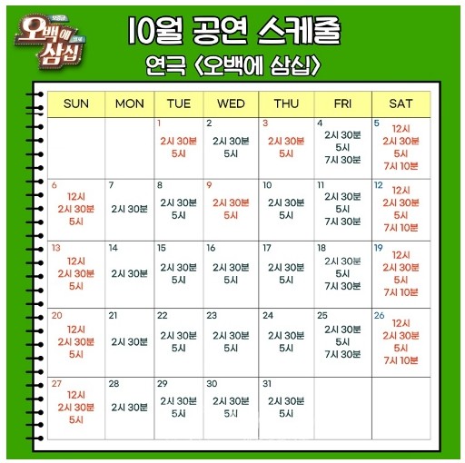 *10월1일, 10월3일, 10월9일 : 2시30분, 5시 (주말 할인 적용됩니다!)