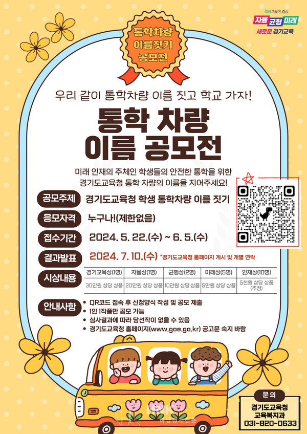 경기도교육청(교육감 임태희)이 5월 22일부터 6월 5일까지 ‘통학차량 이름짓기’ 공모전을 개최한다.