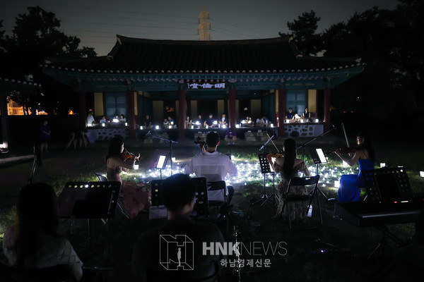 특히, 이번 공연은 전기를 사용하지 않고 청사초롱과 작은 불빛만을 밝힌 채 진행돼 고즈넉한 문화재 공간에서 현대 악기의 선율이 어우러지는 특별한 분위기를 자아냈다.