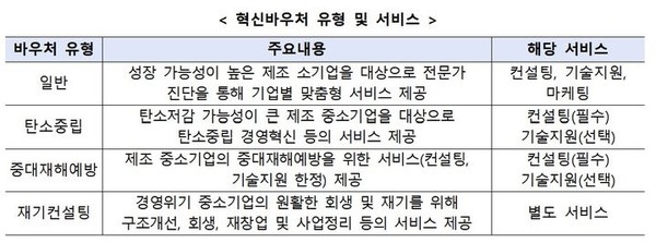 중기부는 기업 경쟁력 강화를 위해 상담·마케팅·기술지원 등 3대 서비스를 묶은 통합 바우처 프로그램에 대한 1차 수요기업 공고를 시행한다.